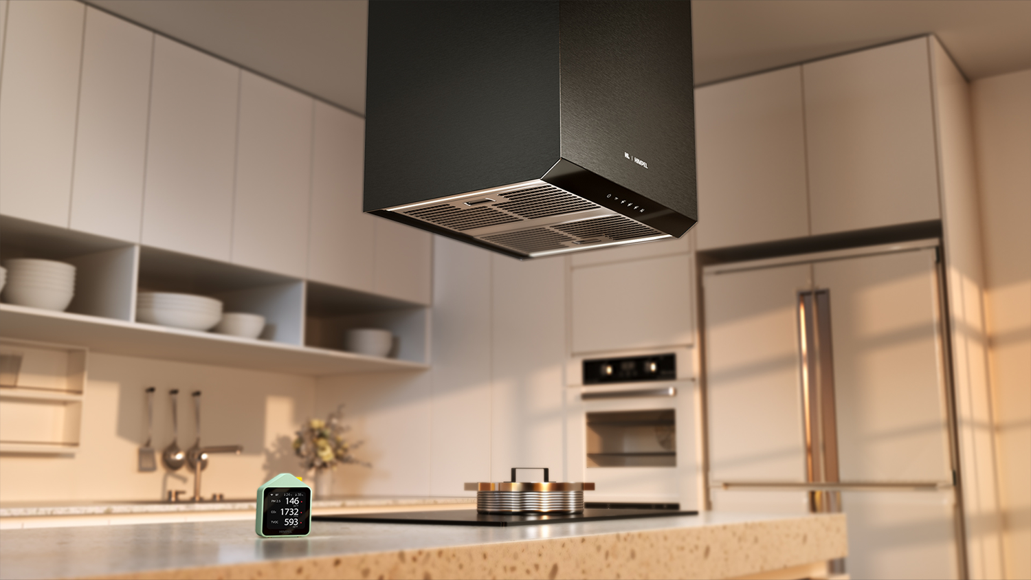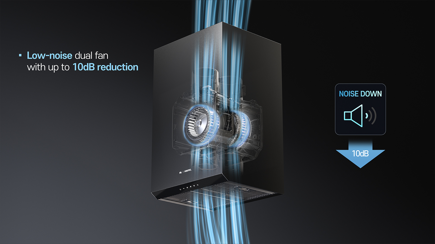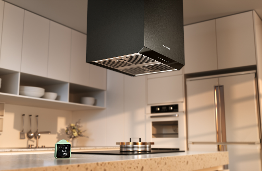 The HL AI Hood is a next-generation kitchen ventilation system that automatically adjusts its operation based on real-time indoor air quality. It works with a portable air quality monitor to detect particulate matter (PM), carbon dioxide (CO₂). When air quality deteriorates during cooking, it activates automatically and coordinates with the home ventilation system to quickly restore a healthy indoor environment. Both systems shut down automatically once conditions return to normal. Equipped with two low-noise fans operating in parallel, it reduces noise by over 10 dB compared to conventional models. Its interchangeable front panel design allows for a customizable “bespoke” look that blends with various kitchen interiors. Combining energy efficiency, quiet operation, and responsive automation, this product offers both advanced air management and an enhanced cooking experience.
