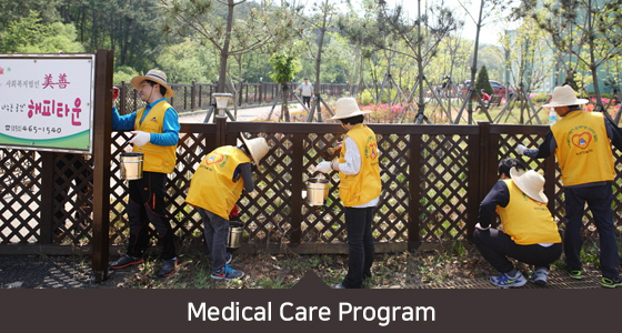 HL D&I Halla provides medical care services to those are who not receiving medical benefits of health insurance; living alone seniors, orphans, foreign workers etc. The services such as health checkup, class for early symptoms detection are provided regularly for underprivileged to improve their health.
