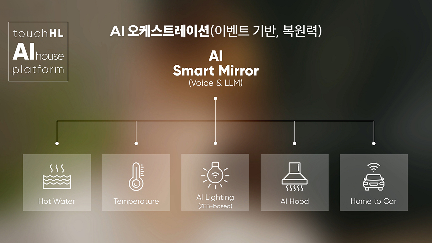 HL D&I Halla의 AI House는 통합 AI 기반 생태계를 통해 스마트 라이프의 미래를 새롭게 정의합니다. 그 중심에는 AI 스마트미러, 단 10초 만에 온수를 제공하는 초고속 열교환기, ZEB 기반 AI 조명, HL AI 후드와 같은 혁신적인 솔루션들이 있습니다. 이 시스템은 차량, IoT 센서, 다양한 생활가전으로까지 확장되어, 끊김 없는 연결성을 가진 생활을 가능하게 합니다. 모든 혁신은 touchHL AI 플랫폼을 통해 유기적으로 통합되어, 사용자의 행동을 지속적으로 학습하며 온도, 조명, 공기질, 온수 등 주거 환경을 최적화합니다. 예측 기반 맞춤형 환경 제공을 통해 AI House는 탁월한 편의성, 에너지 효율성, 그리고 진정한 인간 중심의 스마트 라이프 경험을 완성합니다. AI House는 단순한 집이 아니라, 지속 가능하고 지능적인 생활로 나아가는 발걸음입니다.