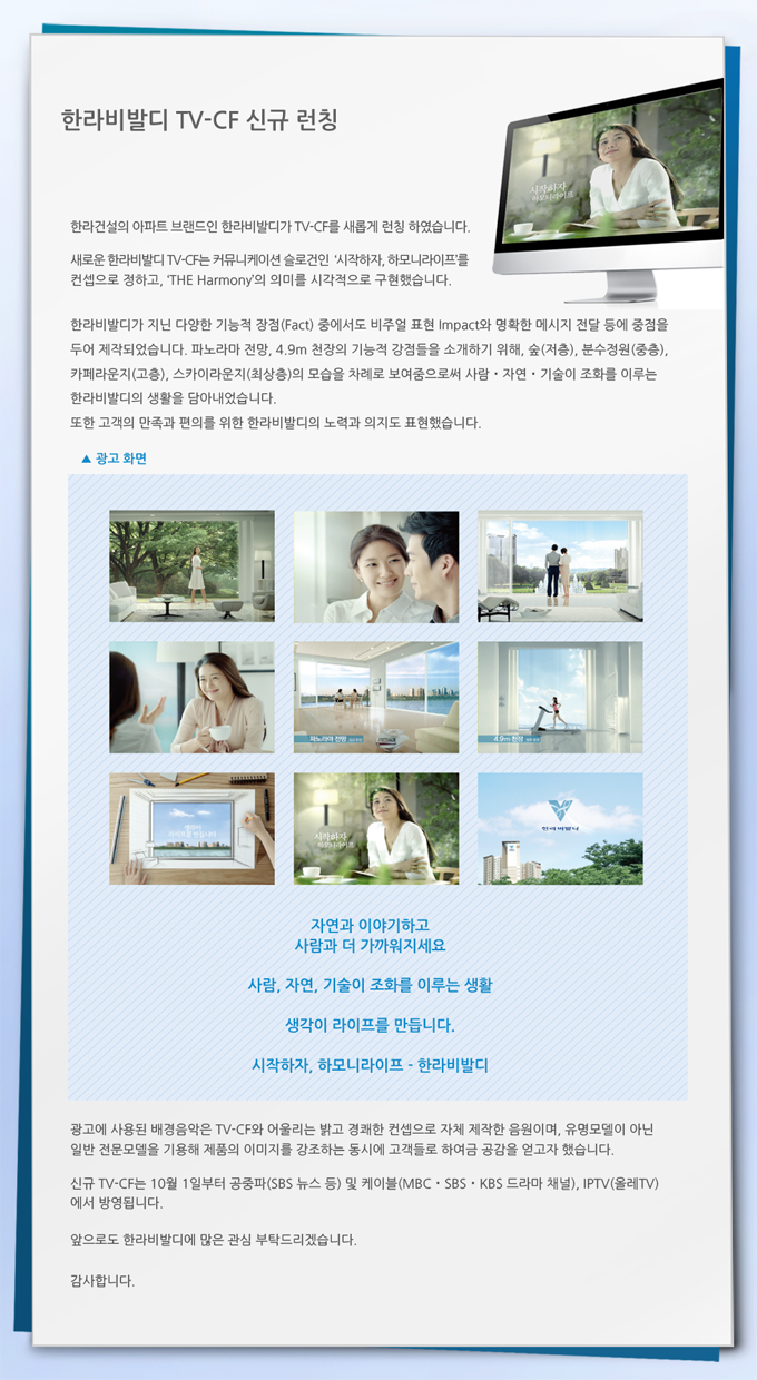 한라건설 아파트브랜드 한라비발디 신규TV-CF런칭