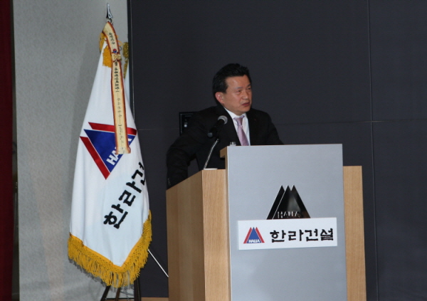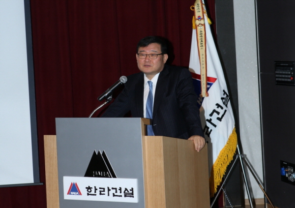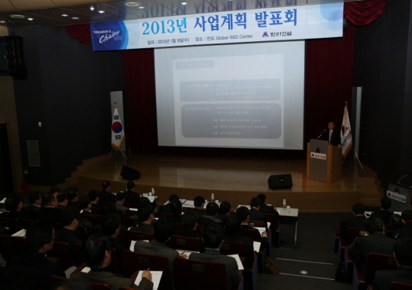 ‘한라건설 2013년도 사업계획 발표회’가 지난 1월 9일, 만도 글로벌 R&D 센터 대강당에서 정몽원 회장·정무현 부회장·최병수 사장을 비롯한 임직원들이 참석한 가운데 개최됐다.