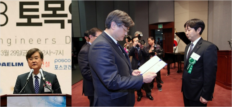 기념식에서 당사 신성장동력부 권영호 부장이사는 건설산업 기술혁신과 발전에 기여한 공로를 인정받아 건설기술진흥 유공 토목기술인에 대한 정부포상으로 국토교통부장관표창을 수상하였다.