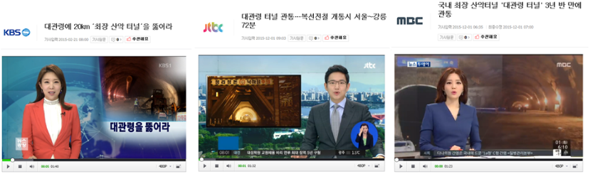 국내 최장 산악터널인 ‘대관령 터널’의 관통식이 지난 30일 오후 강원 평창군 대관령면 현장에서 열렸다. 대관령 터널은 원주~강릉 철도건설 사업 구간 중 평창군 진부면에서 강릉시 성산면을 잇는 전체길이 21.755km로 국내 산악터널 중 가장 길며 시점부와 종점부 표고 차만 444m, 최저지점은 지하 780m에 이르는 최대 난공사 터널로 당사에서 시공하였으며 현재 방수와 라이닝 콘크리트 타설 등 마무리 작업이 한창이다.