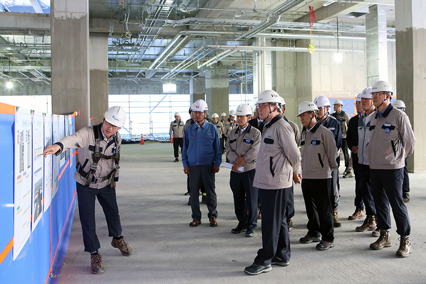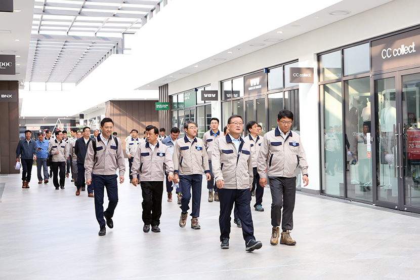 이어 정몽원 회장, 박철홍 사장 및 임직원들은 현장 개요를 브리핑 받으며 현장 곳곳의 주요 구조물을 꼼꼼히 점검했고, 당사가 시공해 지난 4월 오픈한 현대프리미엄아울렛을 함께 시찰했다.